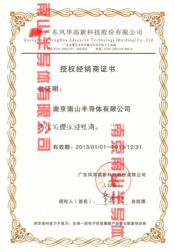 點擊查看風華高科一級代理證書大圖