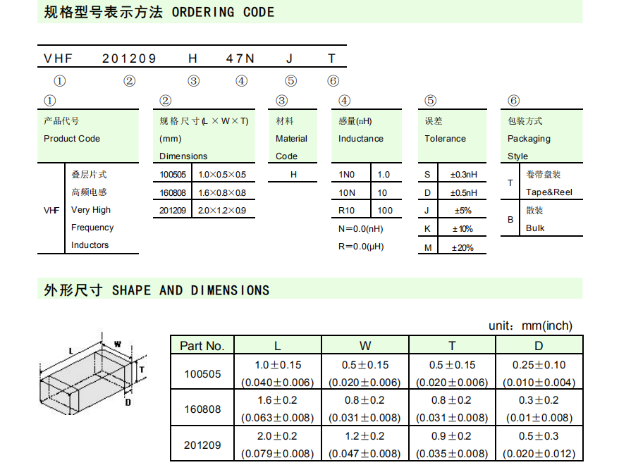 常見的有VHF0402,VHF0603,VHF0805三種規格,今天我們就來對比下常見的0603的貼片高頻電感VHF160808H22NJT和0805的VHF201209H22NJT兩種規格。...