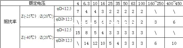 | 額定電壓 | 4 | 6.3 | 10 | 16 | 25 | 35 | 50 | 63 | 100 | 160~250 | 400~450 |